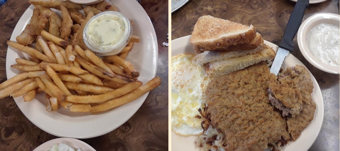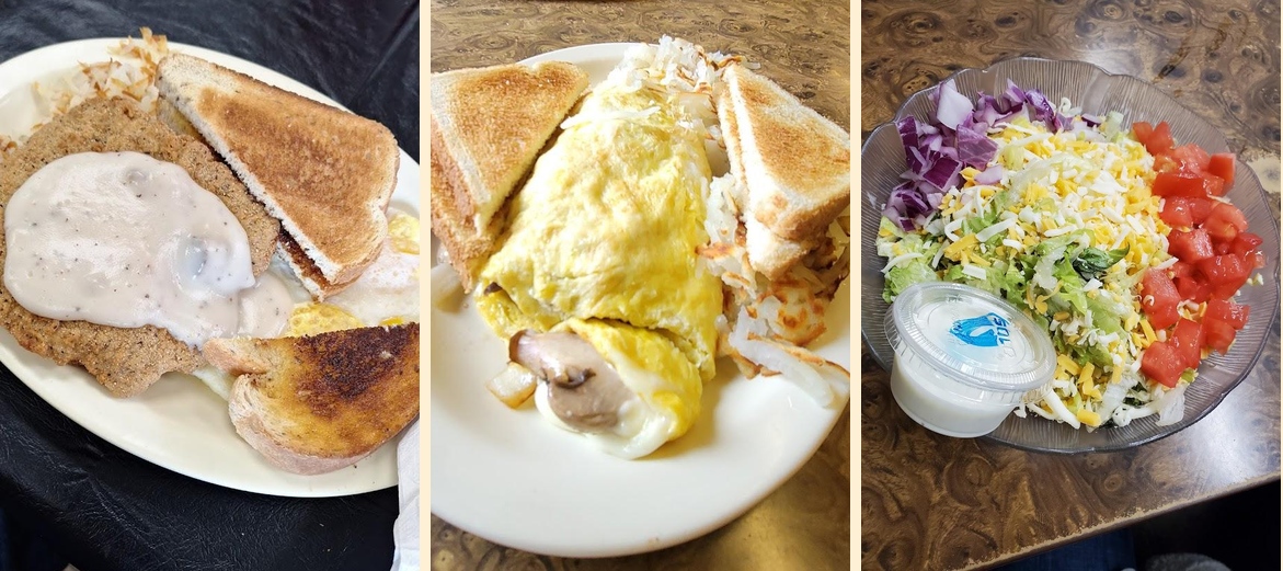 The lumberjack omelet stands out as a favorite. Many patrons rave about its heartiness. The pies, particularly, receive praise for their delightful taste. Freshly brewed coffee always pleases customers. Service from the staff shines brightly, noted for being friendly and efficient.